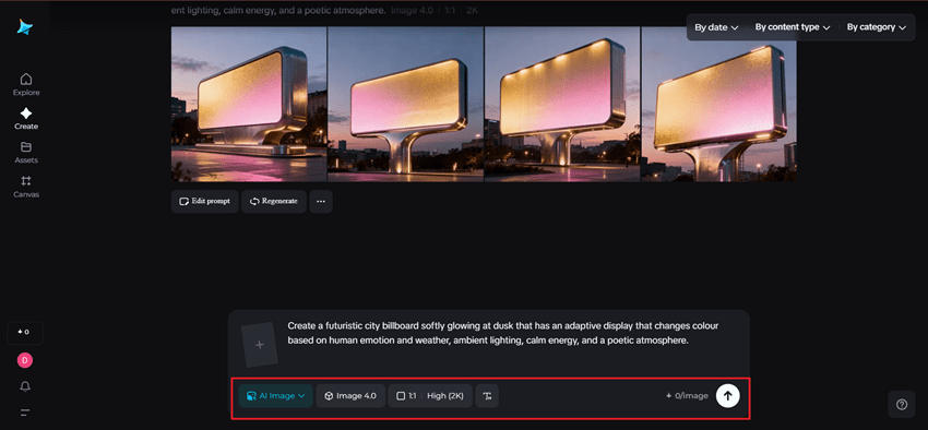 Begin by going to Dreamina and writing a descriptive text prompt that creates an emotional tone for your idea for a vision.